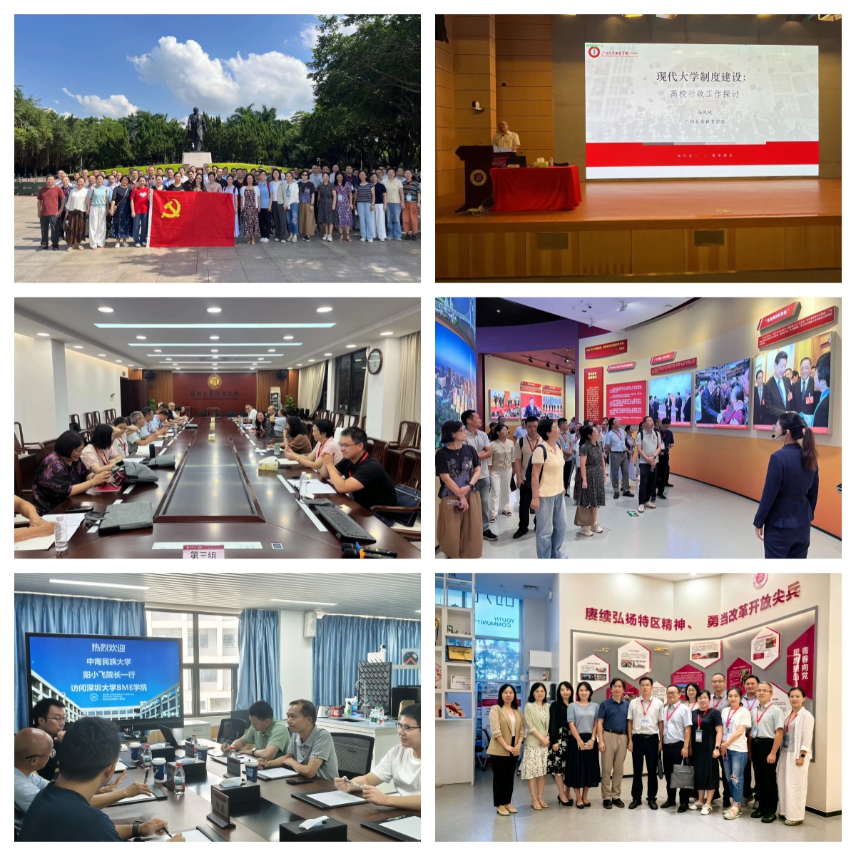 為期7天的集中培訓,先后組織開展了《習近平新時代中國特色社會主義思想指引下中青年干部的學習與成長》《黨的二十屆三中全會精神解讀——著力推進教育強國建設、科技人才融合發展》《抓住改革關鍵點,建設高水平大學——以深圳大學為例》《現代人工智能及應用》《高校人才評價與績效考核策略》《現代大學制度建設——高校行政工作探討》《深入貫徹中央八項規定精神、切實加強黨的作風建設》等專題講座。培訓班全體學員堅持對標對表,堅持問題導向,堅持上門請教,分赴深圳大學相關學院、職能部門開展“對崗交流”,與深大教師、管理干部面對面交流,精準梳理本單位在爭創“雙一流”建設、內部治理中的短板弱項,收集可復制、可推廣的經驗做法,圍繞“服務強國建設、聚焦鑄牢主線、推動學校轉型升級高質量發展”“學先進、找差距、補短板、促提升”“深化作風建設、增強履職能力”等主題開展了交流研討。培訓班結合學習教育,組織全體學員赴深圳蓮花山公園鄧小平同志塑像廣場瞻仰偉人銅像,感悟“敢闖敢試、敢為人先、埋頭苦干”的特區精神。培訓班還組織學員赴“大潮起珠江”廣東改革開放四十周年展、大疆無人機等開展現場教學,學習“深圳速度”背后的制度創新邏輯和技術創新實踐。