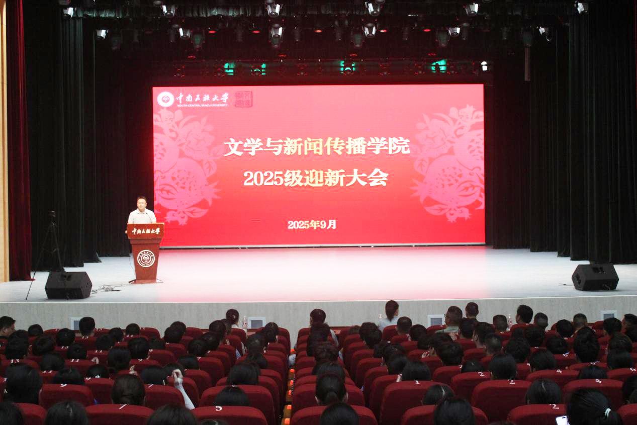 文學(xué)與新聞傳播學(xué)院迎新大會(huì)現(xiàn)場。學(xué)院供圖