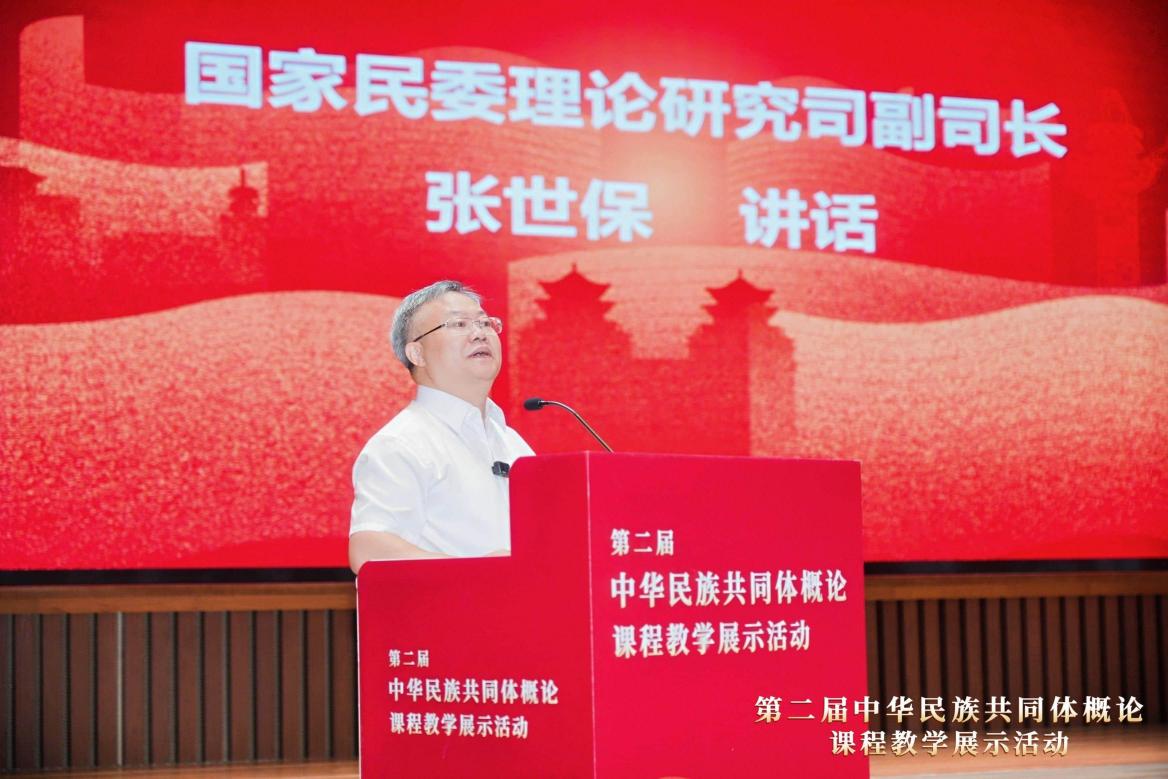 國家民委理論研究司副司長張世保,校黨委副書記、校長劉義出席開幕式并致辭。張世保表示,“中華民族共同體概論”課程推廣實施以來,各項工作取得了顯著進展,產(chǎn)生了廣泛而積極的社會反響。各位教師要努力成為鑄牢中華民族共同體意識教育的示范者,積極成為中華民族共同體學(xué)學(xué)科建設(shè)的推動者,主動成為中華民族共同體建設(shè)的實踐者。