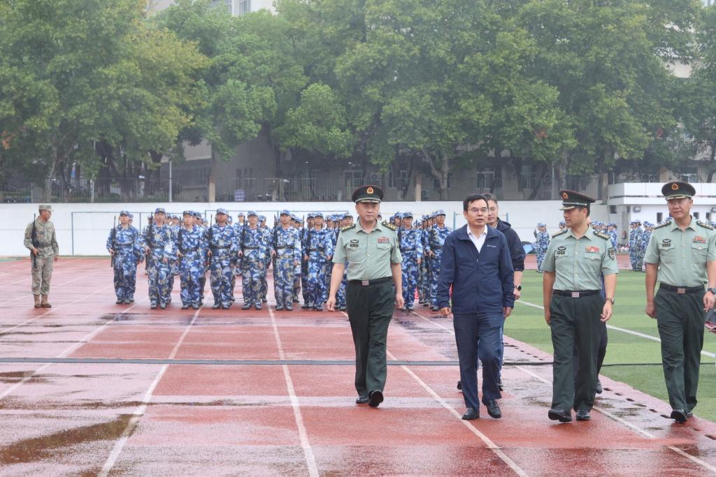 座談會前,徐業勤陪同孫宏偉一行深入新生軍訓訓練場地,實地檢查指導各營連訓練實況,慰問全體教官和參訓學生。訓練場上,全體參訓學員著裝嚴整、動作剛健、口號響亮、斗志昂揚,充分展現了扎實的訓練成果和奮發向上的精神風貌,兩校領導對當前軍訓工作的階段性成果給予了高度評價。