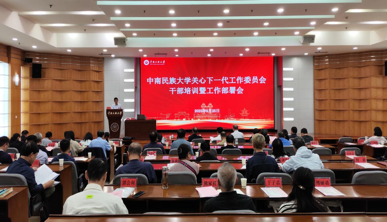 9月25日上午,我校2025年關(guān)心下一代工作委員會(huì)(以下簡稱“關(guān)工委”)干部培訓(xùn)暨工作部署會(huì)在學(xué)術(shù)交流中心舉行。湖北省教育廳關(guān)工委副主任肖慎鋼,我校黨委副書記、副校長、校關(guān)工委主任宋發(fā)軍,校關(guān)工委常務(wù)副主任楊衛(wèi)東、副主任冉春桃、副秘書長張賢平,各成員單位負(fù)責(zé)人,各學(xué)院二級(jí)關(guān)工委主任、秘書長,學(xué)?!拔謇稀惫歉?、鑄牢中華民族共同體意識(shí)“五老”宣講團(tuán)及老同志代表等120余人參加會(huì)議。會(huì)議由離退休工作處黨委書記、處長、校關(guān)工委秘書長張文軍主持。
