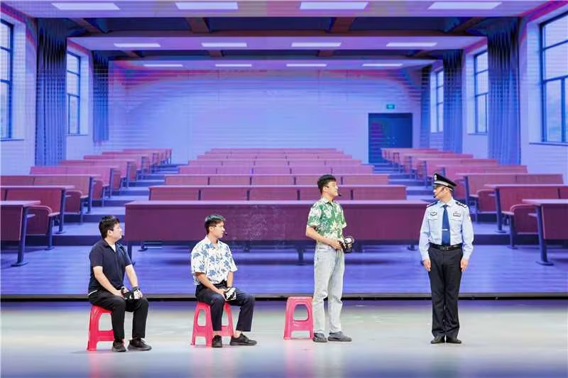反詐情景劇《最后一課》瞬間抓住了所有觀眾的心。演員們真實(shí)再現(xiàn)了騙子如何利用學(xué)生的焦慮心理層層設(shè)套,以及警方如何爭(zhēng)分奪秒進(jìn)行防詐勸阻。“當(dāng)時(shí)我差點(diǎn)就信了!”劇中大學(xué)生的臺(tái)詞,引得臺(tái)下同學(xué)陣陣共鳴,驚呼不已。