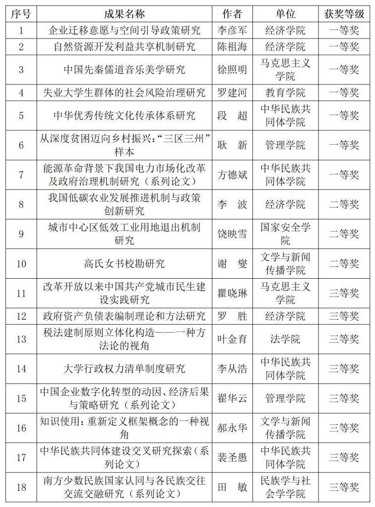 9月30日,湖北省人民政府發(fā)布《關(guān)于表彰第十四屆湖北省社會科學(xué)優(yōu)秀成果獎的通報》。我校教師共獲18項成果獎,包括一等獎7項、二等獎3項、三等獎8項。其中,一等獎獲獎數(shù)量躍居全省高校前列,創(chuàng)下學(xué)校在該獎項的歷史最佳成績,充分彰顯了學(xué)校在哲學(xué)社會科學(xué)研究領(lǐng)域的強勁實力與蓬勃創(chuàng)新活力。