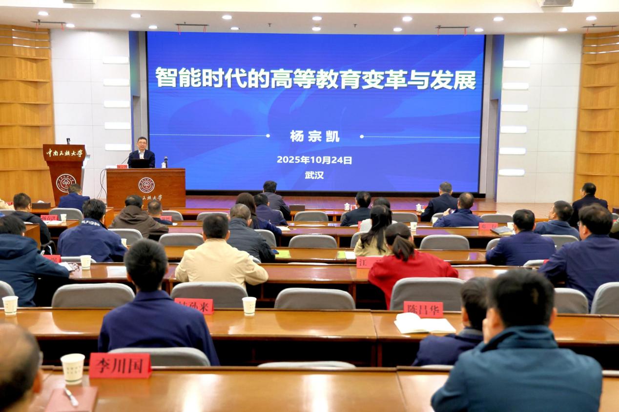 10月24日上午,國家數字化學習工程技術研究中心和教育大數據應用技術國家工程實驗室主任楊宗凱教授應邀來校作了題為《智能時代的高等教育變革與發展》的專題報告。全體在校校領導、各單位主要負責人在學術交流中心主會場參加學習,各單位副處級干部、科室負責人,教學單位系主任及專業負責人在各分會場通過線上直播參加學習。講座由校黨委副書記、校長劉義主持。