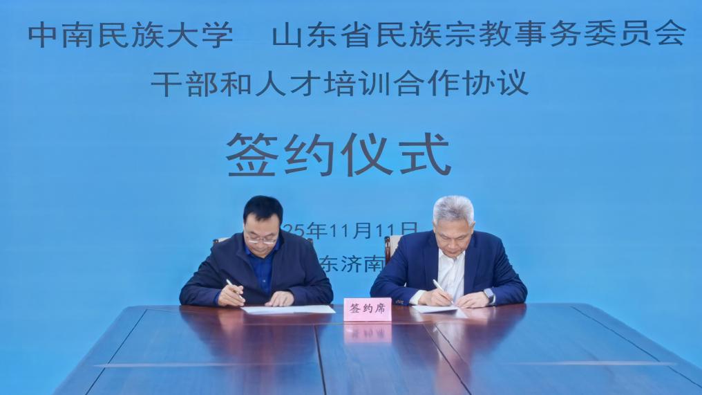 11月10日至12日,校黨委常委、副校長馬玉堂一行赴山東省民族宗教事務委員會,落實校地全面戰略合作框架協議,簽署干部和人才培訓合作協議,實地調研基層培訓需求,推動雙方合作不斷走深走實。山東省民族宗教事務委員會黨組成員、副主任馬輝及各處室負責同志參加座談。
