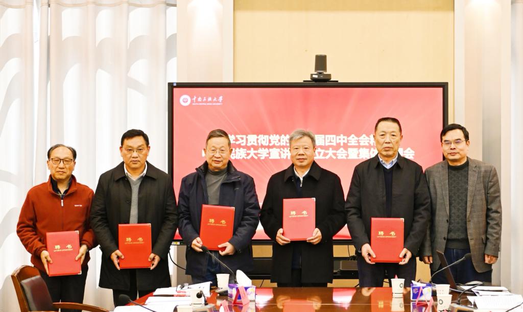 會(huì)上,馬玉堂傳達(dá)學(xué)習(xí)了國家民委黨組、湖北省委關(guān)于學(xué)習(xí)貫徹黨的二十屆四中全會(huì)精神的相關(guān)文件精神,宣讀了學(xué)校宣講團(tuán)、“銀齡”宣講團(tuán)、青年學(xué)生宣講團(tuán)成員名單。徐業(yè)勤為學(xué)習(xí)貫徹黨的二十屆四中全會(huì)精神中南民族大學(xué)宣講團(tuán)成員頒發(fā)聘書。