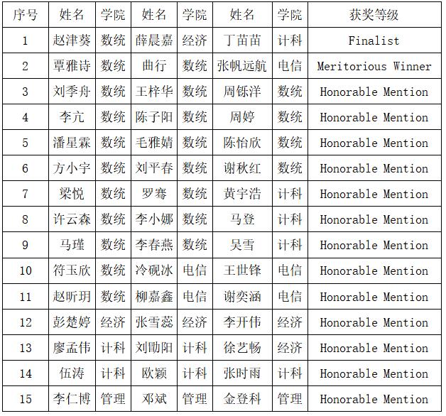 附:我校參加2020美國大學生數學建模競賽獲獎情況