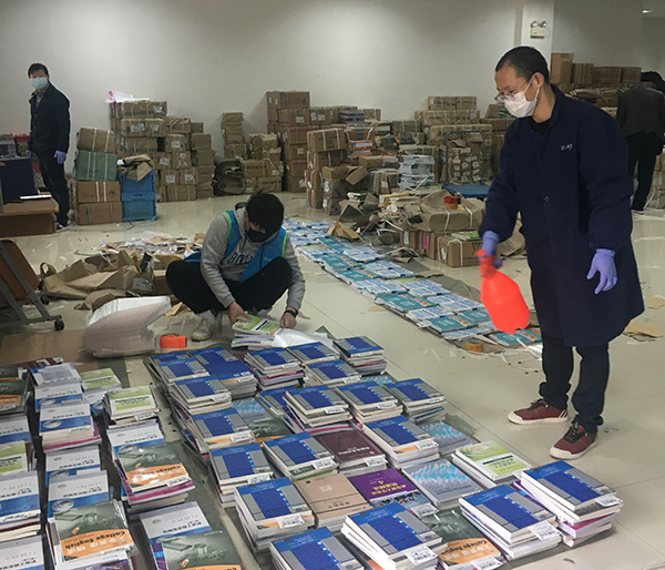 為準(zhǔn)確、快速地將教材寄送至學(xué)生手中,教務(wù)處及各學(xué)院相關(guān)工作人員加班加點做好信息統(tǒng)計、核對工作。許多學(xué)院的黨政領(lǐng)導(dǎo)、輔導(dǎo)員、教學(xué)秘書分期分批到現(xiàn)場進(jìn)行核對。書商、快遞公司和學(xué)院分工明確,各司其職,銜接有序地完成揀書、核對、消毒、裝袋、打包、貼單、搬運等工作。