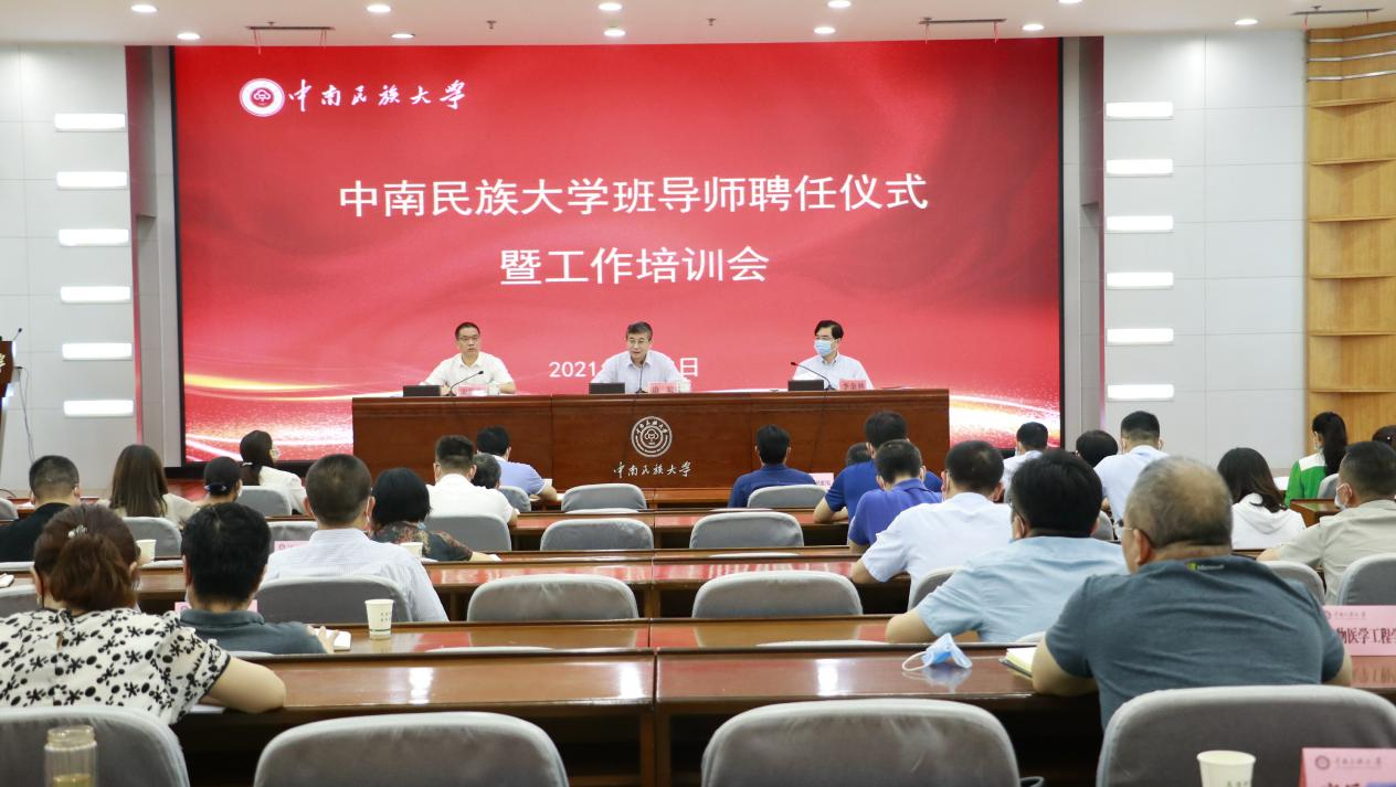 李金林傳達了國家民委關于做好2021年秋季學期開學后重點工作的通知精神,宣讀了班導師聘任文件,強調要做好疫情防控工作,落實立德樹人根本任務。今年5月,我校印發(fā)《中南民族大學班導師隊伍建設實施辦法》,首次開展班導師統一選聘、統一培訓和統一上崗。班導師制度是對原有的班主任制度進一步強化和升級。全面加強學校班導師隊伍建設,是貫徹落實黨中央和國家民委黨組、教育部黨組關于加強教師隊伍建設、強化學生工作、提升人才培養(yǎng)質量的一項重要舉措。784名班導師的聘任上崗,對于打通學生教育管理“最后一公里”,推動形成“三全育人”合力,提高人才培養(yǎng)質量具有重要意義。