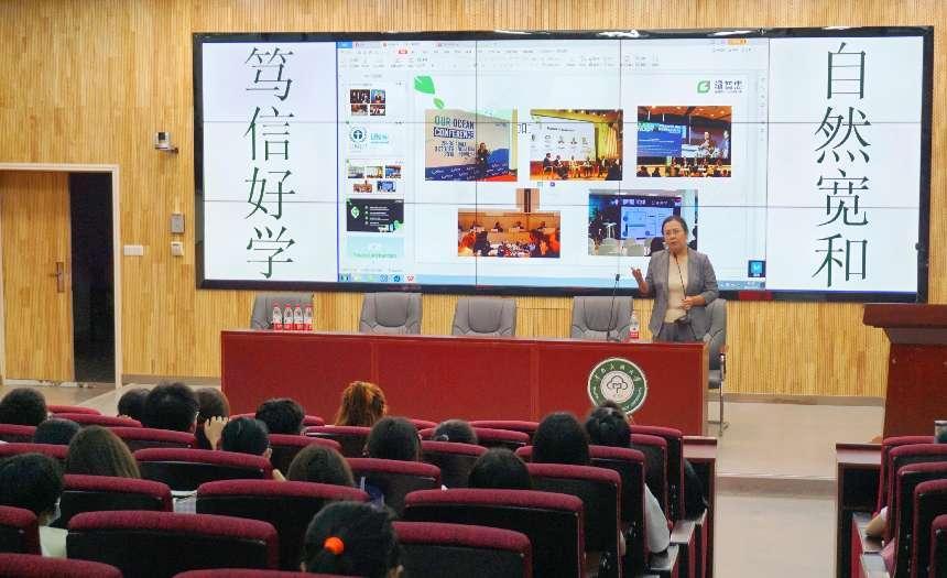 9月27日晚,文傳學院邀請中華環(huán)保聯(lián)合會綠色循環(huán)普惠專委會秘書長、北京綠普惠網(wǎng)絡科技有限公司董事長、曾任聯(lián)合國環(huán)境署官員的蔣南青博士來校作《零碳可持續(xù)發(fā)展和校園行動》講座,這是我校開展的“氣候傳播進校園”系列講座第5場。講座在1號教學樓舉行,文傳學院徐紅教授主持講座,120名新聞傳播學本科生與碩士研究生到場聽講。