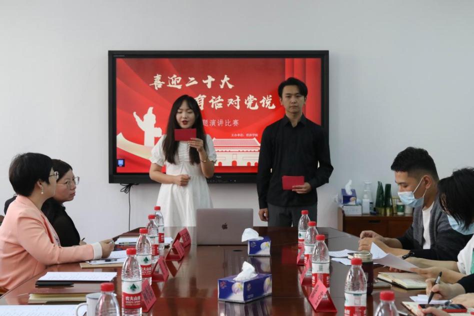為貫徹落實習(xí)近平總書記關(guān)于青年工作的重要思想,扎實推進(jìn)愛黨愛國教育活動的開展,迎接黨的二十大勝利召開,10月14日下午,經(jīng)濟(jì)學(xué)院舉辦了“喜迎二十大,有話對黨說”主題演講比賽決賽。經(jīng)濟(jì)學(xué)院相關(guān)負(fù)責(zé)人參加活動,學(xué)院教工和學(xué)生黨支部書記擔(dān)任評委。