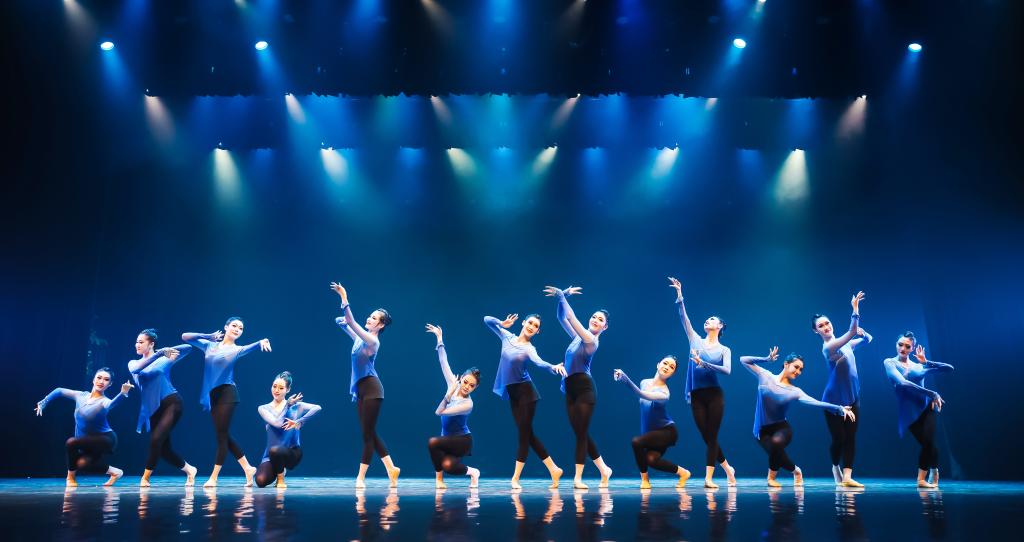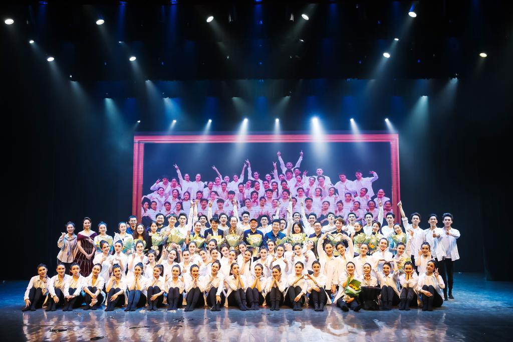 “一二三四,五六七八……”在會演的尾聲節目《壹玖·時光》中,全體學生身著白色襯衫,隨著任課老師熟悉的節拍聲起舞,共同喚醒在練功房灑下的汗與淚的回憶。隨后,師生同臺表演,在現代舞蹈與蒙古族、藏族風格鮮明的民間民族舞的交替表演中盡顯不忘初心的青春本色。