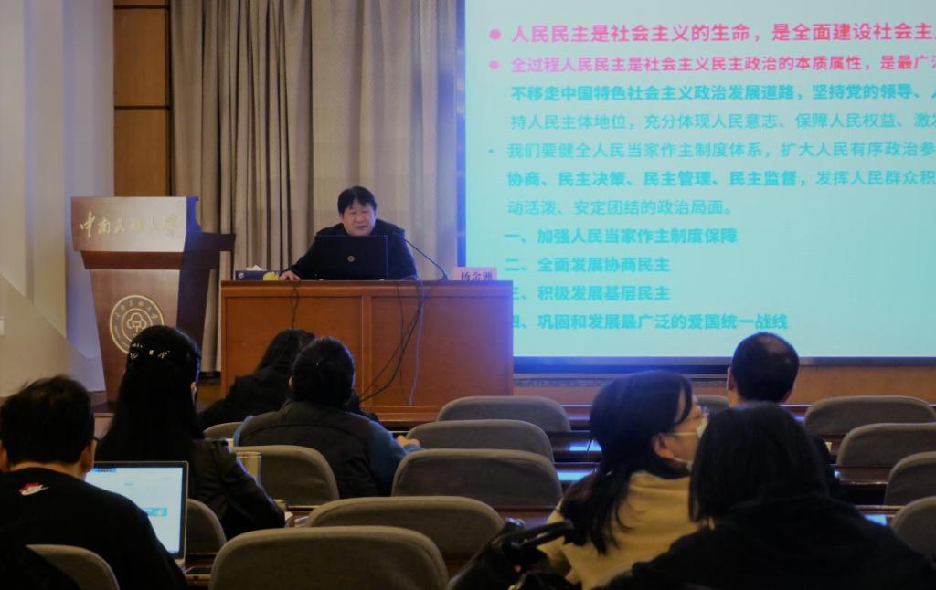 楊教授提出,學習黨的二十大精神,重點要深刻認識“兩個確立”的決定性意義,把思想和行動統一到黨的二十大報告的精神上來,既要整體把握、全面系統,又要突出重點、抓住關鍵,既要注重道理明白,更要聯系工作實際。要以昂揚奮進的姿態,踏實苦干的精神,聚焦立德樹人根本任務,為學校高質量發展貢獻更大智慧和力量。