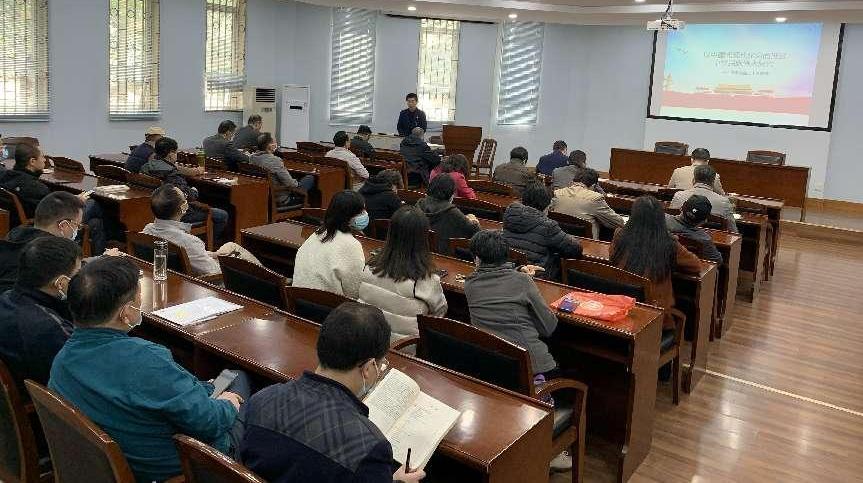 11月24日下午,學(xué)校黨的二十大精神宣講團(tuán)成員、馬克思主義學(xué)院黨委書記魏大江為民社學(xué)院全體教職工作宣講報(bào)告。宣講會(huì)由黨委書記李從浩主持。
