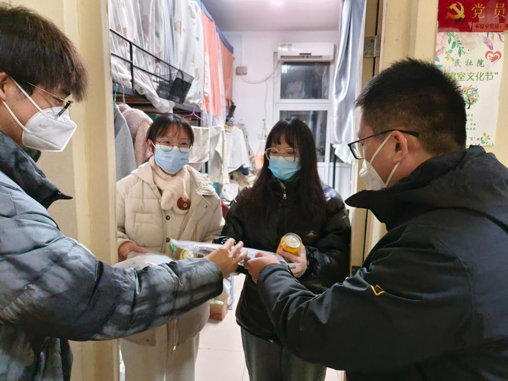 “最近狀態怎么樣?”“一定要做好個人防護,注意身體健康。”“希望你們都能一戰成碩,考研成功!”……12月13日晚,民社學院領導、輔導員、班導師走進大四考研學生寢室,詳細了解同學們的生活學習情況,并為他們送去了考研愛心大禮包。
