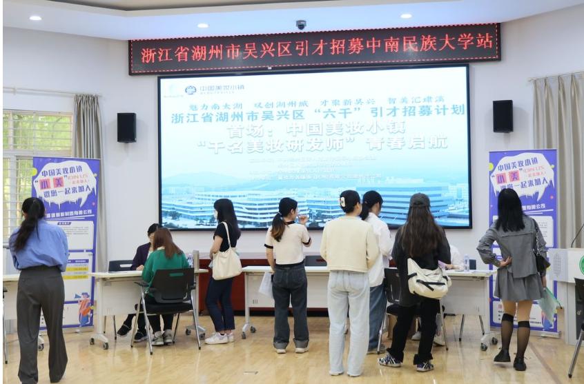 在招聘會現場,來自埭溪美妝小鎮的珀萊雅化妝品股份有限公司、浙江創贏新材料有限公司、江德馬工業設備有限公司、綺麗華美妝制品(湖州)有限公司等16家企業參加了招聘會,提供機電工程師、IT程序師、鄉村運營師、童裝設計師、美妝研發師等需求崗位。