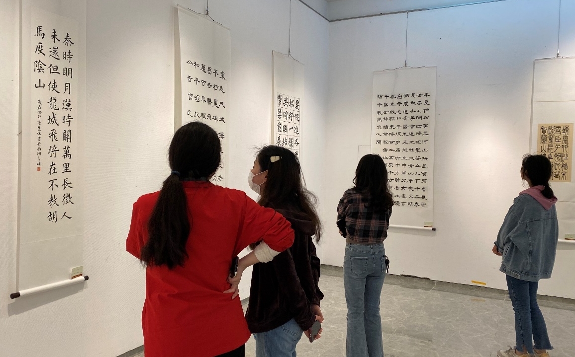 學校主題教育書畫展由校紀委辦公室、黨委宣傳部、黨委組織部聯合主辦,美術學院承辦。展覽展出了學校部分教職工的作品近80件,包括人生格言、從政警句、廉政詩詞歌賦等書法繪畫作品,以藝術形式宣傳習近平總書記關于加強和改進民族工作的重要思想,各民族休戚與共、榮辱與共、生死與共、命運與共的中華民族共同體理念。