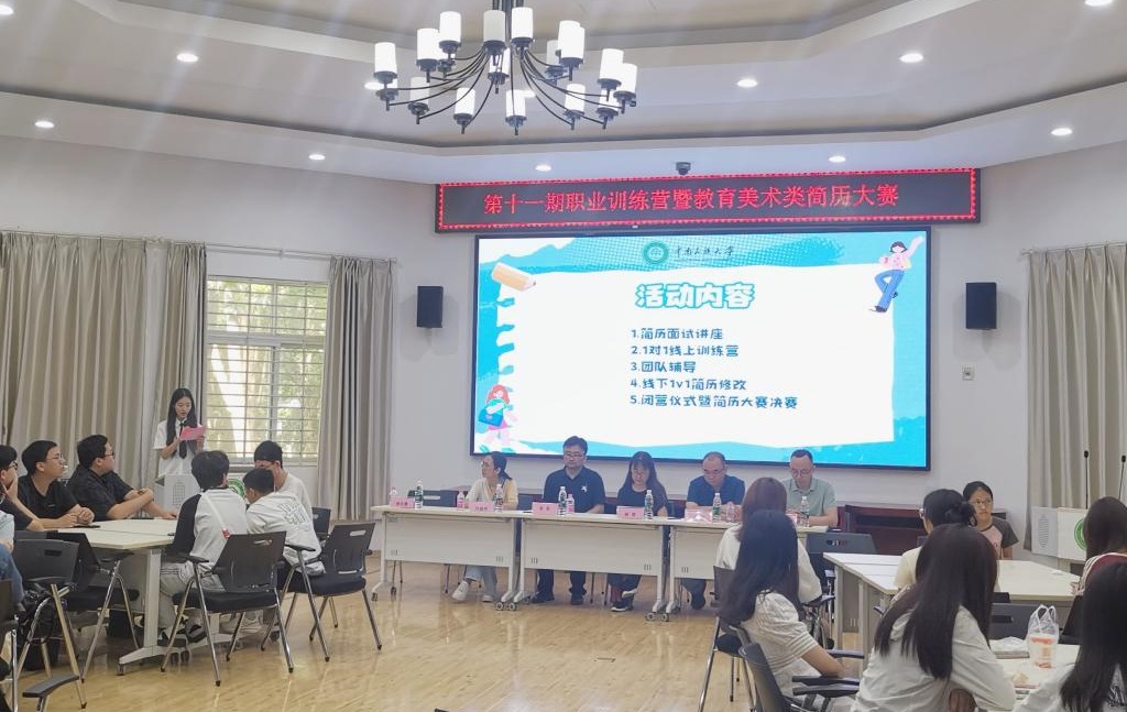 本次活動由招生就業工作處主辦,教育學院和美術學院承辦。訓練營包含六個環節的系列活動,5月24日,訓練營率先舉辦了簡歷面試講座,為參賽學生提供了寶貴的求職技巧和建議。5月29日,訓練營將開展線下1v1簡歷修改活動,經過初賽選拔后,選手們將在6月2日閉營儀式暨教育美術類簡歷大賽決賽中展示作品。