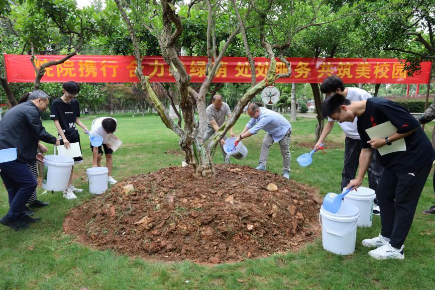 師生共同為石榴樹澆水。資環(huán)學(xué)院供圖