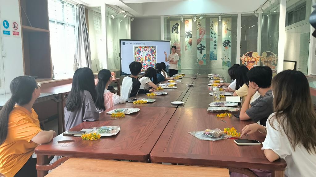 9月14日中午,由黨委宣傳部主辦、大學生記者團承辦的“丹青繪團扇,中秋話團圓”主題課堂活動在美術學院舉行。記者團成員參加活動,活動由美術學院繪畫2201班的周可心主持。