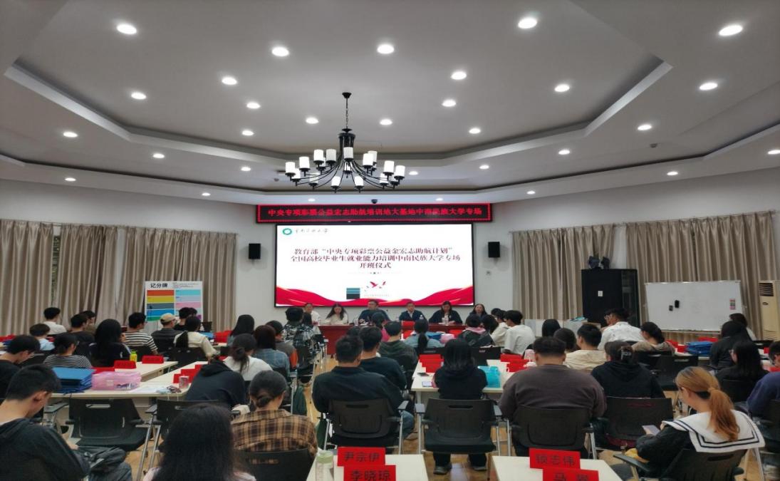 10月14日,教育部“中央專項(xiàng)彩票公益金宏志助航計(jì)劃”全國(guó)高校畢業(yè)生就業(yè)能力培訓(xùn)中南民族大學(xué)專場(chǎng)開(kāi)班儀式在4號(hào)樓舉行。此次活動(dòng)由湖北省教育廳就業(yè)指導(dǎo)中心地大基地與我校聯(lián)合主辦。中國(guó)地質(zhì)大學(xué)(武漢)學(xué)生就業(yè)指導(dǎo)處、職業(yè)發(fā)展指導(dǎo)中心負(fù)責(zé)人,我校招生就業(yè)工作處負(fù)責(zé)人及我校100名宏志助航培訓(xùn)班學(xué)員參加開(kāi)班儀式。