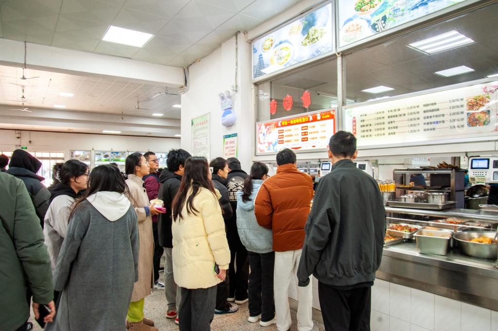 學(xué)生在“上岸”窗口排隊(duì)就餐。馮筠然 攝