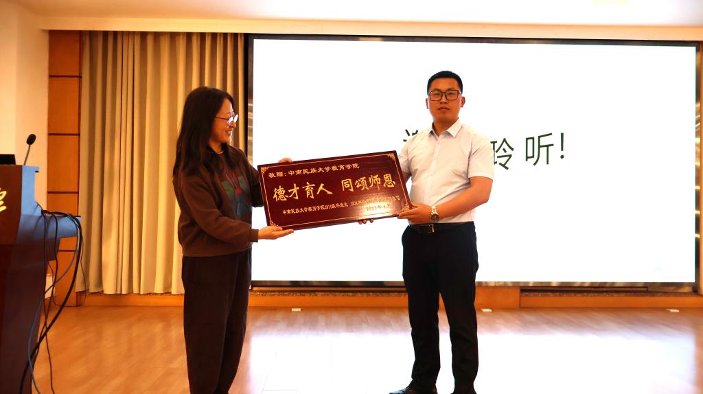 馬永飛向學院贈送牌匾。 教育學院供圖