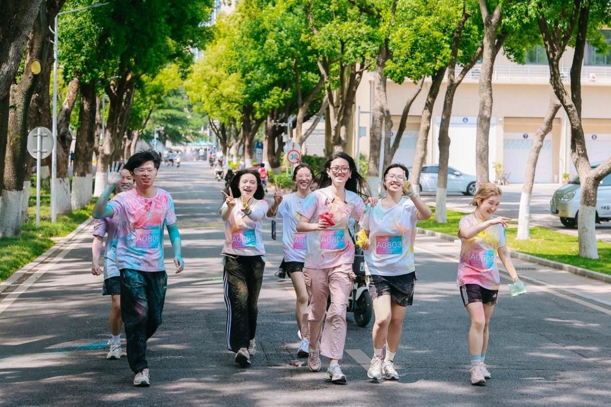本次馬拉松活動(dòng)精彩紛呈,有5個(gè)任務(wù)點(diǎn):大展“紅”圖,以知識(shí)問(wèn)答展示理論基礎(chǔ);“青”力相助,以乒乓接力傳遞團(tuán)隊(duì)精神;奇創(chuàng)“藍(lán)”圖,以趣味拼圖構(gòu)筑共同愿景;共鑄輝“黃”,以黃盒疊塔激發(fā)思維碰撞;眾志成“橙”,以奔跑競(jìng)速凝聚青春合力。此外,還設(shè)有6個(gè)游戲體驗(yàn)點(diǎn),包括猜謎、彩繪、投壺、知識(shí)速記等關(guān)卡,考驗(yàn)兼具體力與腦力的比拼。賽道設(shè)置以民族團(tuán)結(jié)為主題,使參賽師生在奔跑中感受體育精神,在團(tuán)隊(duì)協(xié)作中深化“石榴籽”般的情感聯(lián)結(jié)。