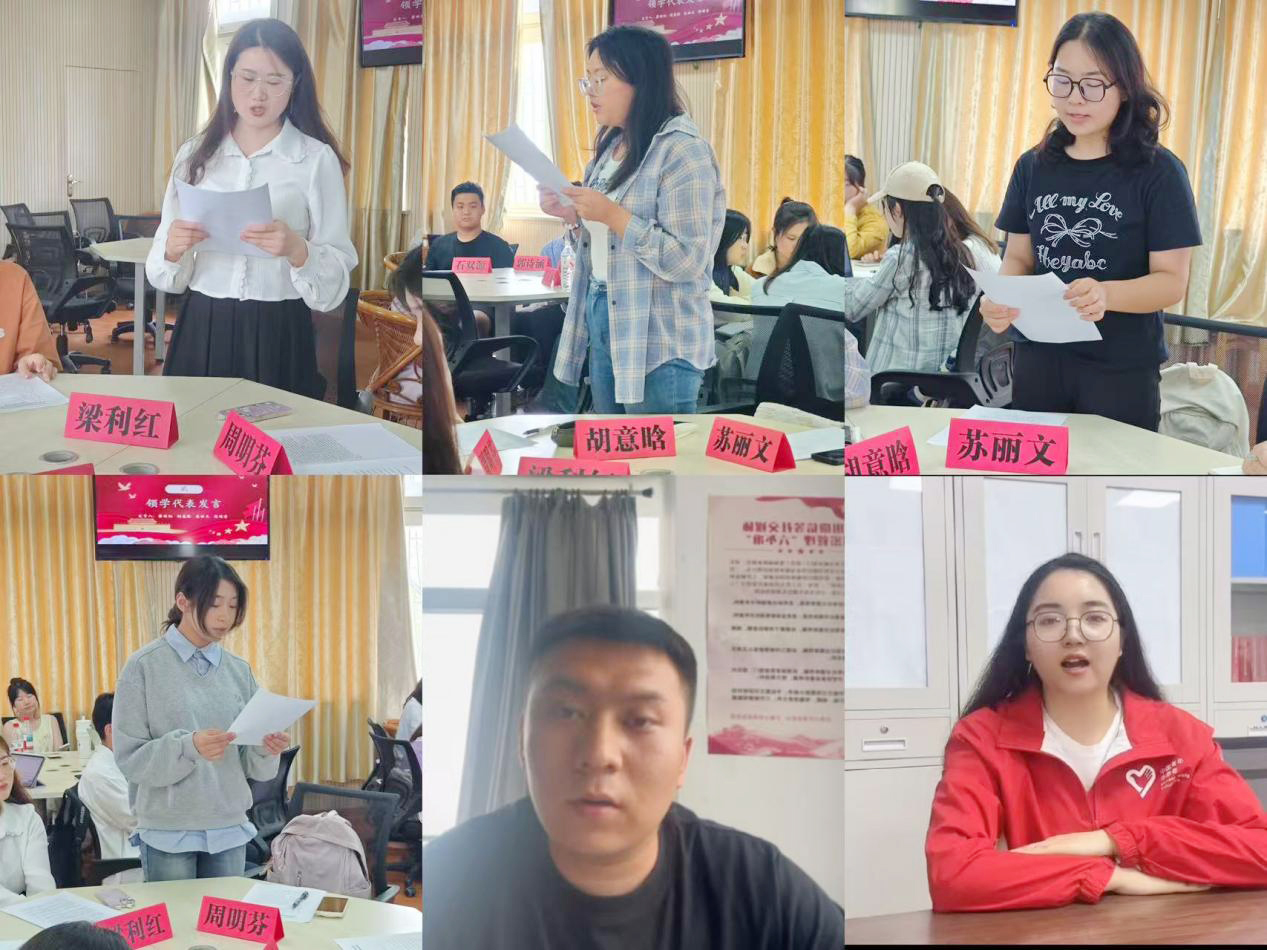 主題團(tuán)課上,金瑤領(lǐng)學(xué)了習(xí)近平總書記重要回信原文,并傳達(dá)了我校黨委書記徐業(yè)勤在學(xué)校學(xué)習(xí)習(xí)近平總書記2025年五四重要回信精神座談會上對青年學(xué)子的期待和要求。結(jié)合學(xué)習(xí)主題和自身經(jīng)歷,馬克思主義學(xué)院2023級碩士研究生梁利紅、2024級碩士研究生胡意晗、2023級本科生蘇麗文,以及2024級本科生周明芬分別作了學(xué)習(xí)心得分享。馬克思主義學(xué)院2位參加“西部計(jì)劃”的志愿者馬皓、馬琪分別結(jié)合在寧夏、新疆的工作經(jīng)歷和心路歷程分享了自己的心得體會。
