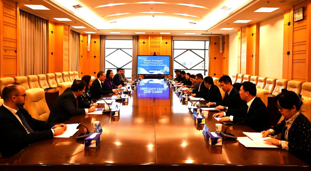 11月12日至13日,斯洛伐克布拉迪斯拉發夸美紐斯大學法學院院長愛德華·布爾達教授、副院長利維婭·特雷洛娃教授一行7人來訪我校,與法學院開展為期2天的調研交流活動。