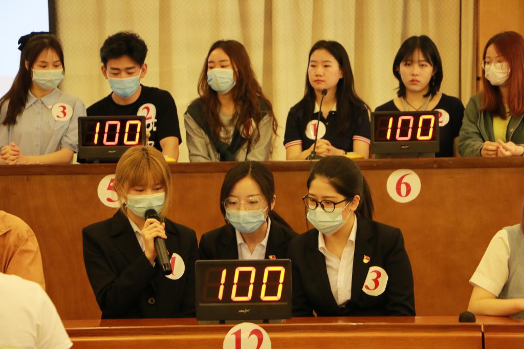在總決賽現場,選手們斗志昂揚,展現出良好的精神風貌。在必答題環節,大家沉著冷靜,顯示出扎實的知識儲備?!罢埪狀},1928年6月在莫斯科舉行的是中國共產黨第幾次全國代表大會?”“第六次,回答完畢!”“回答正確,加10分?!边x手準確的回答不時引發熱烈掌聲。在搶答題環節,選手們眼疾手快,激戰不斷,現場呼聲陣陣。最激動人心的是風險題環節,本環節推動決賽走向高潮。風險題根據問題難度分為3個等級,答對可加分,答錯則對應扣分。有的隊伍選擇穩中求勝,放棄回答風險題,有的隊伍迎難而上,向困難題發起挑戰。位居5號臺的經濟學院代表隊雖然已獲得全場最高分,但不止步于當下,向更高分值的風險題發起挑戰。面對難題,隊員從容淡定、配合默契,在規定的時間內給出了正確答案,奪得全場桂冠。公管學院代表隊獲得了第二名,第三至六名均為校學生會線下選拔隊伍。