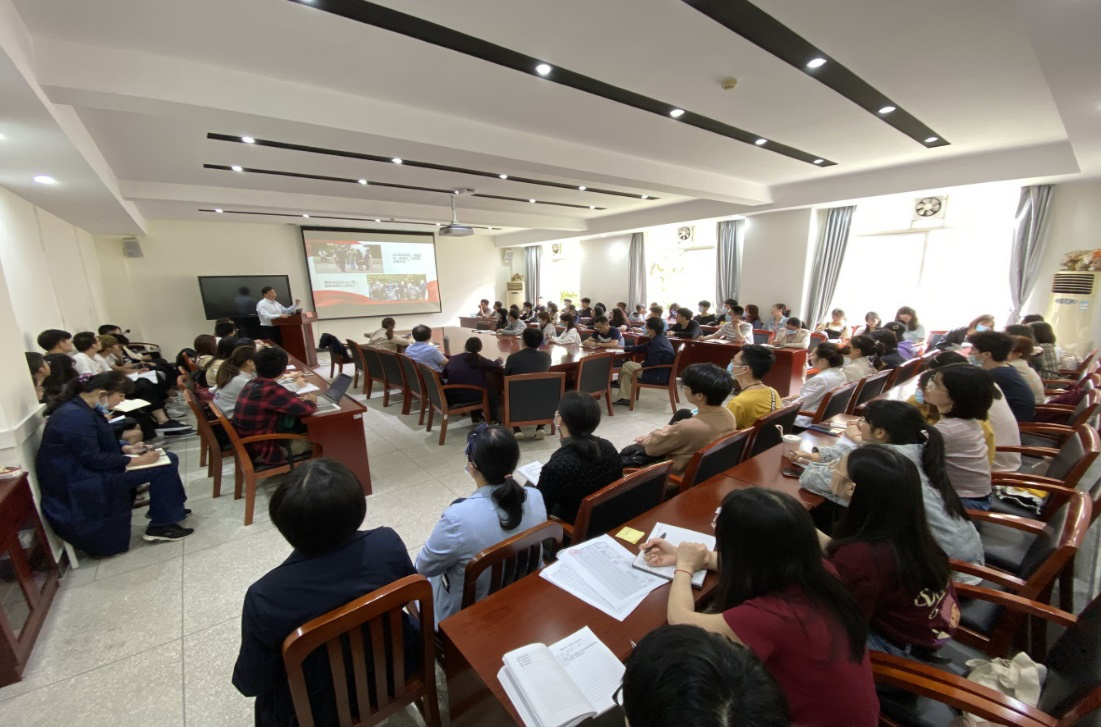 專題黨課從“學黨史堅定理想信念”“學黨史弘揚優良傳統”“學黨史牢記初心使命”“學黨史培育時代新人” “學黨史夯實黨建基礎”五個方面展開。杜冬云結合學習體會、自身的成長經歷及身邊人、身邊事,號召廣大黨員同志通過黨史學習教育汲取黨的光榮傳統、優良作風和精神力量。他希望青年學生提高政治站位,學會思考,將人生理想和小我融入祖國的大我中,讓青春與祖國共奮進,努力成為全面發展的合格建設者和可靠接班人。他要求廣大黨員教師必須堅持黨的領導,立德樹人,為黨育人,為國育才;把提高思想政治素質和職業道德水平擺在首要位置,堅持教書和育人相統一,堅持言傳和身教相統一;嚴守政治紀律和政治規矩,以《新時代教師職業行為十項準則》為行為規范,做良好師德師風的表率;持續提升自身職業素質,完善自身知識結構。