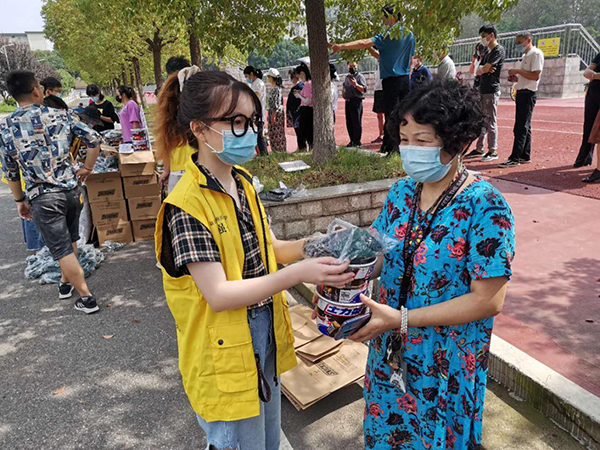 8月11日至12日,我校近20名志愿者走進高校、走入社區、走上街頭,向宿舍管理員、安保隊員、社區工作人員、快遞員、環衛工人、公交車司機等城市一線工作者送上士力架、工作手套等加油包共1000份,感恩他們在戰疫情、戰洪水、戰酷暑期間的堅守和奉獻,向這群江城的英雄致敬。