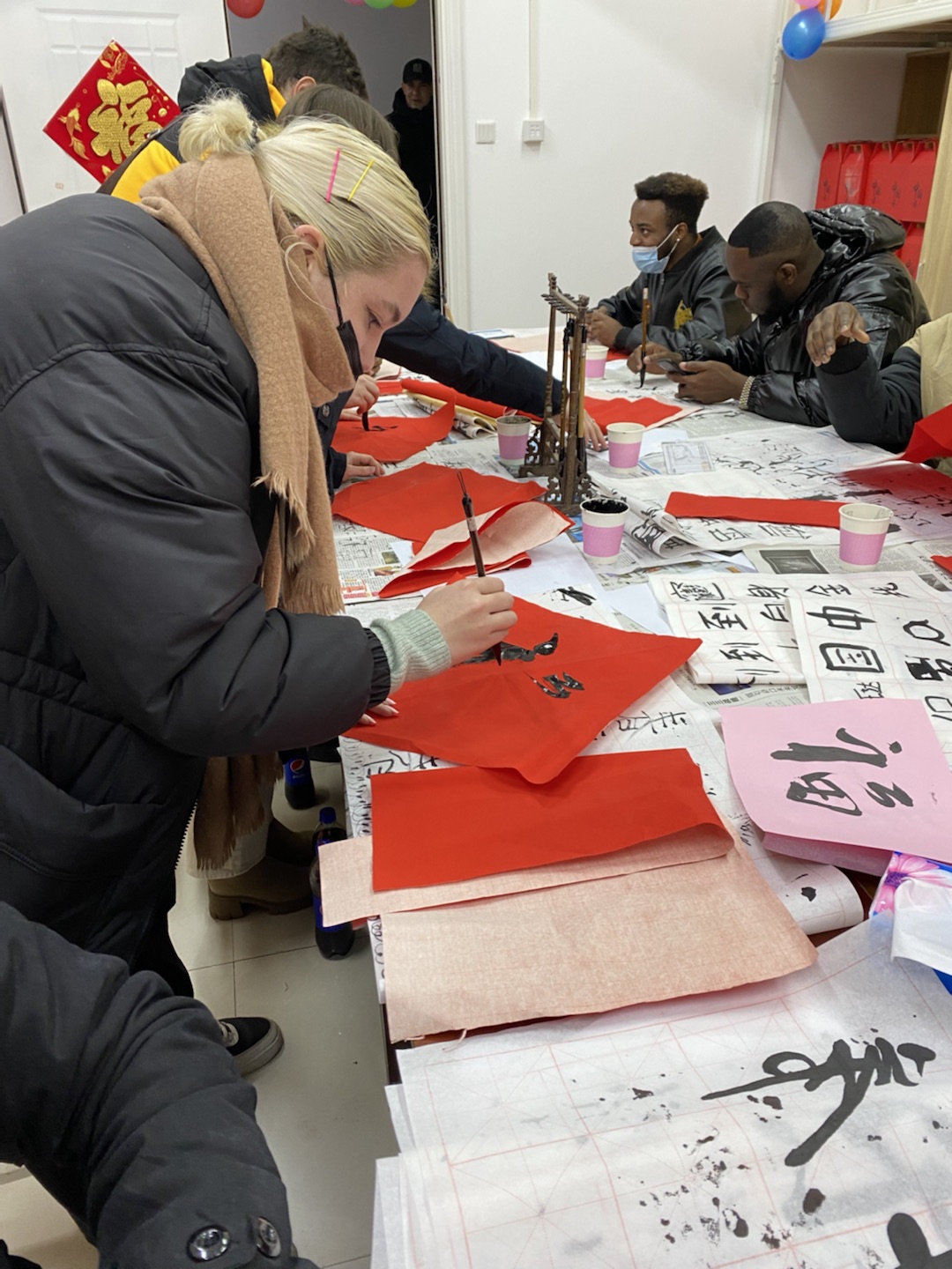 留學生練習寫福字。付麗娜 攝
