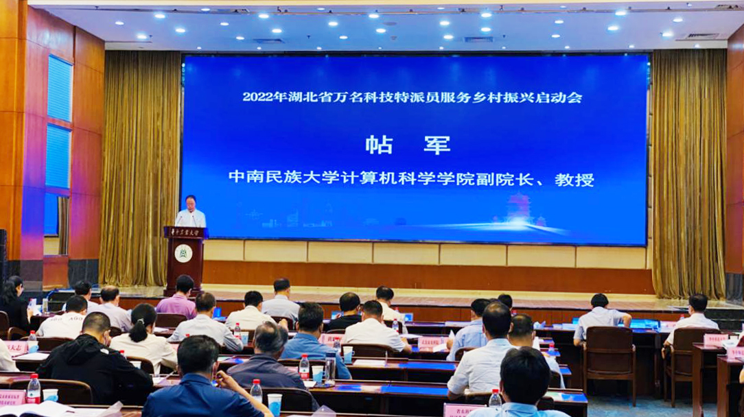 5月7日,湖北省科技廳在武漢組織召開全省萬名科技特派員服務鄉村振興啟動會。湖北省科技廳、27家科技特派員派出單位代表在主會場參加會議,各市(州)、縣(市、區)科技管理部門及科技特派員代表共計1126人在107個分會場參會,4266名科技特派員通過手機和電腦客戶端同步收聽收看會議直播。我校計科學院副院長帖軍教授與其他2位科技特派員一起,作為全省近萬名科技特派員的代表發言,總結交流“三農服務”經驗。