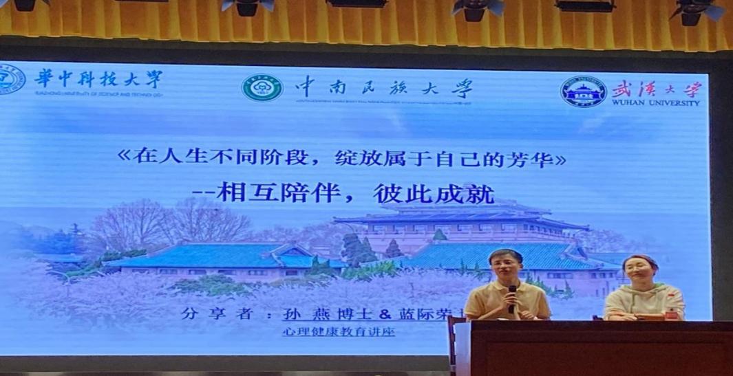 浪漫五月,與愛(ài)同行。5月22日晚,在“5·25”心理健康教育日到來(lái)之際,為引導(dǎo)學(xué)生樹(shù)立正確愛(ài)情價(jià)值觀,資環(huán)學(xué)院特別邀請(qǐng)了華中師范大學(xué)心里健康教育中心專(zhuān)家余海軍老師和分別在華中科技大學(xué)、武漢大學(xué)攻讀博士學(xué)位的校友孫燕、藍(lán)際榮來(lái)校,在學(xué)術(shù)會(huì)堂開(kāi)展了以“愛(ài)自己、愛(ài)他人”為主題的分享報(bào)告會(huì),學(xué)院黨委副書(shū)記黃本金、輔導(dǎo)員老師和2020、2021級(jí)學(xué)生參加了報(bào)告會(huì)。