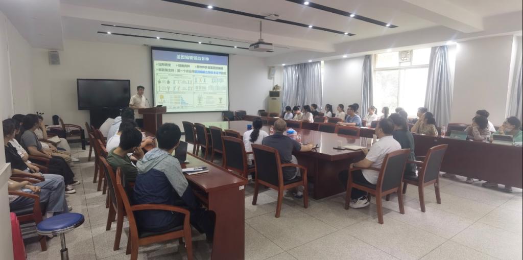 該院優(yōu)秀畢業(yè)生、華中農(nóng)業(yè)大學(xué)博士沙干應(yīng)邀作題為“基因編輯優(yōu)化CDP-DAG合成酶賦予水稻廣譜抗病性”的學(xué)術(shù)報告。沙干重點(diǎn)介紹了自己近期以第一作者在Nature雜志發(fā)表的最新研究成果,并結(jié)合自身的求學(xué)歷程和科研體會,對在場的學(xué)生給出了積極的建議,鼓勵大家做科研需長期堅守,積極與導(dǎo)師溝通交流,注重團(tuán)隊協(xié)作。會場學(xué)術(shù)氣氛熱烈,師生圍繞學(xué)術(shù)問題、實驗技術(shù)和科研心得等多方面進(jìn)行了深入交流。