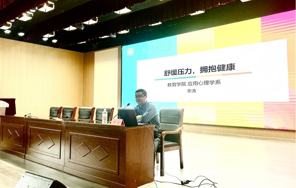 為增強學生心理健康意識,疏解心理壓力,助力高考,5月31日,教育學院應用心理學李濤副教授赴鄂州市梁子湖高級中學開展以《舒緩壓力,擁抱健康》為題的心理健康講座。教育學院黨委書記林晉,梁子湖高中黨支部書記、校長張敬龍,雙方單位班子成員、教師代表和300余名梁子湖高中學生參加了此次活動。