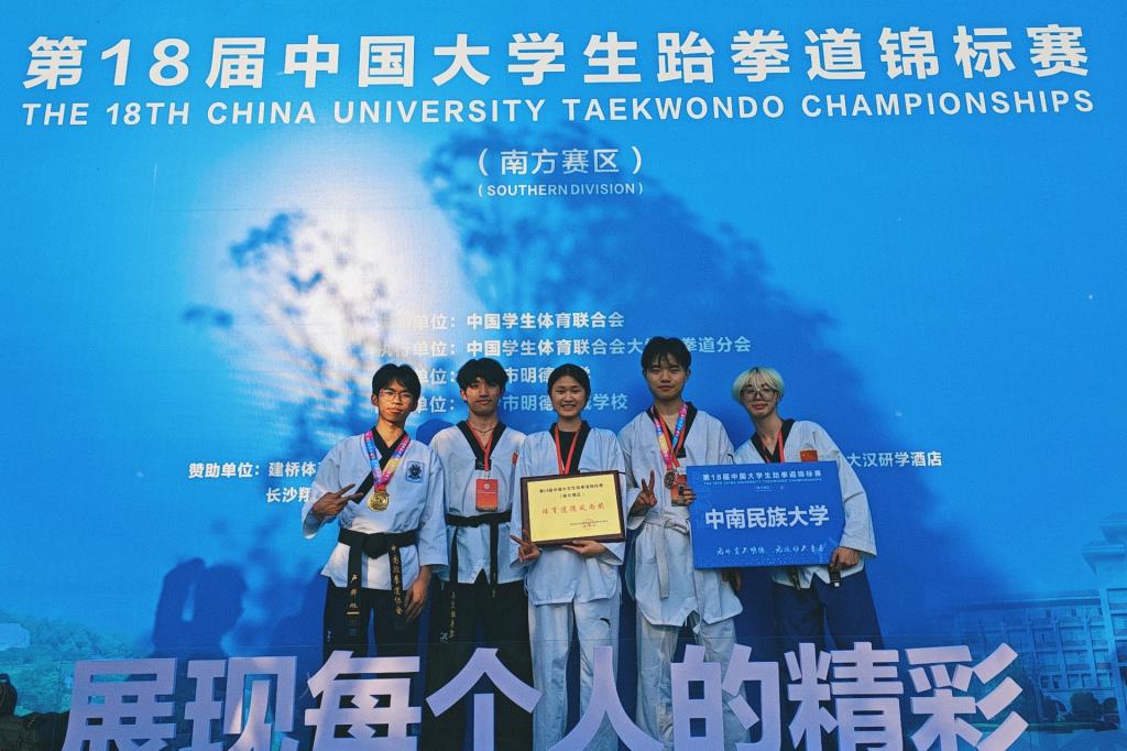 5月24日,由中國學生體育聯合會主辦的第18屆全國大學生跆拳道錦標賽(南方賽區)在湖南長沙落下帷幕,我校跆拳道代表隊在郭艷華老師指導下,展現非凡實力,斬獲金牌2枚、銅牌1枚。