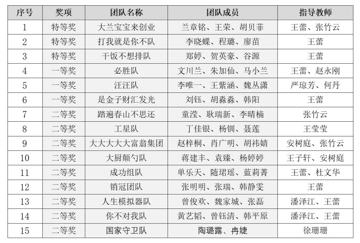 本次競賽活動的校賽由實驗教學與工程訓練中心、創(chuàng)新創(chuàng)業(yè)學院承辦,公司運營仿真與模擬實戰(zhàn)俱樂部協(xié)辦。公司運營仿真與模擬實戰(zhàn)俱樂部在校團委的大力支持下,精心組織了賽前培訓、訓練以及校級選拔賽。全校129支參賽隊經(jīng)過層層篩選,最終有19支代表隊成功晉級省賽,與全省936支參賽隊同臺競技,經(jīng)過激烈角逐,不負眾望,取得優(yōu)異成績。其中,“大蘭寶寶來創(chuàng)業(yè)”等3支隊伍榮獲特等獎,“必勝隊”等3支隊伍獲得一等獎,“踏遍春山不思還”等9支隊伍獲得二等獎。