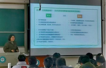 3月1日下午,第一場觀摩課在楊波老師講授的《離散結構》上進行,該課程獲批省級一流本科課程、校級在線課程和校級課程思政示范課程。課堂上,她圍繞“命題和命題聯結詞”專題,將國內外數學家探索未知、追求真理、勇攀科學高峰的故事融入教學中,激發學生的大國工匠精神和科技報國的家國情懷。