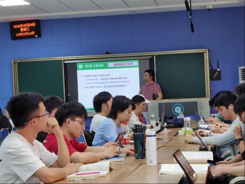 5月28日上午,第二場觀摩課來到了徐科老師《大數據技術及應用》課堂,該課程為校級課程思政示范課程。課堂上,他主要講授“云數據庫”專題,引導學生把時間和精力投入到專業學習上來,為將來幫助國家解決卡脖子技術難題貢獻智慧和力量,不斷增強學生使命擔當和社會責任。