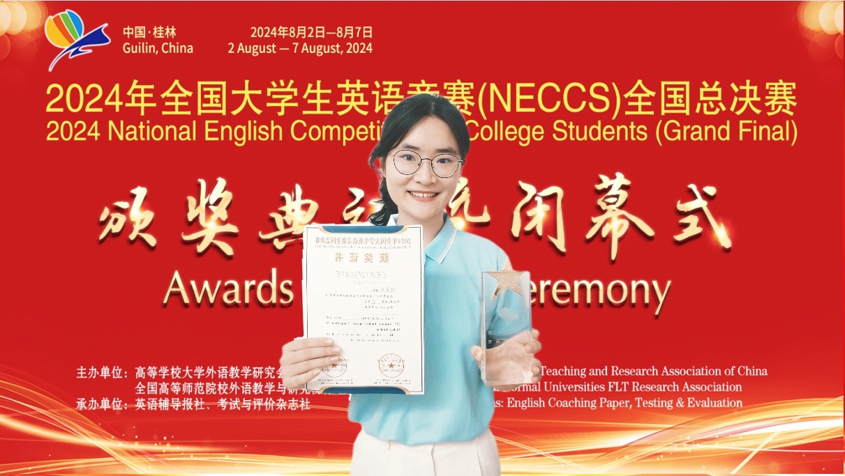 8月6日,2024年全國大學(xué)生英語競賽(NECCS)全國決賽在廣西桂林落下帷幕,我校法學(xué)院2021級學(xué)生魏粲然喜獲第二十三屆全國大學(xué)生英語演講比賽一等獎,創(chuàng)我校歷年來最好成績。