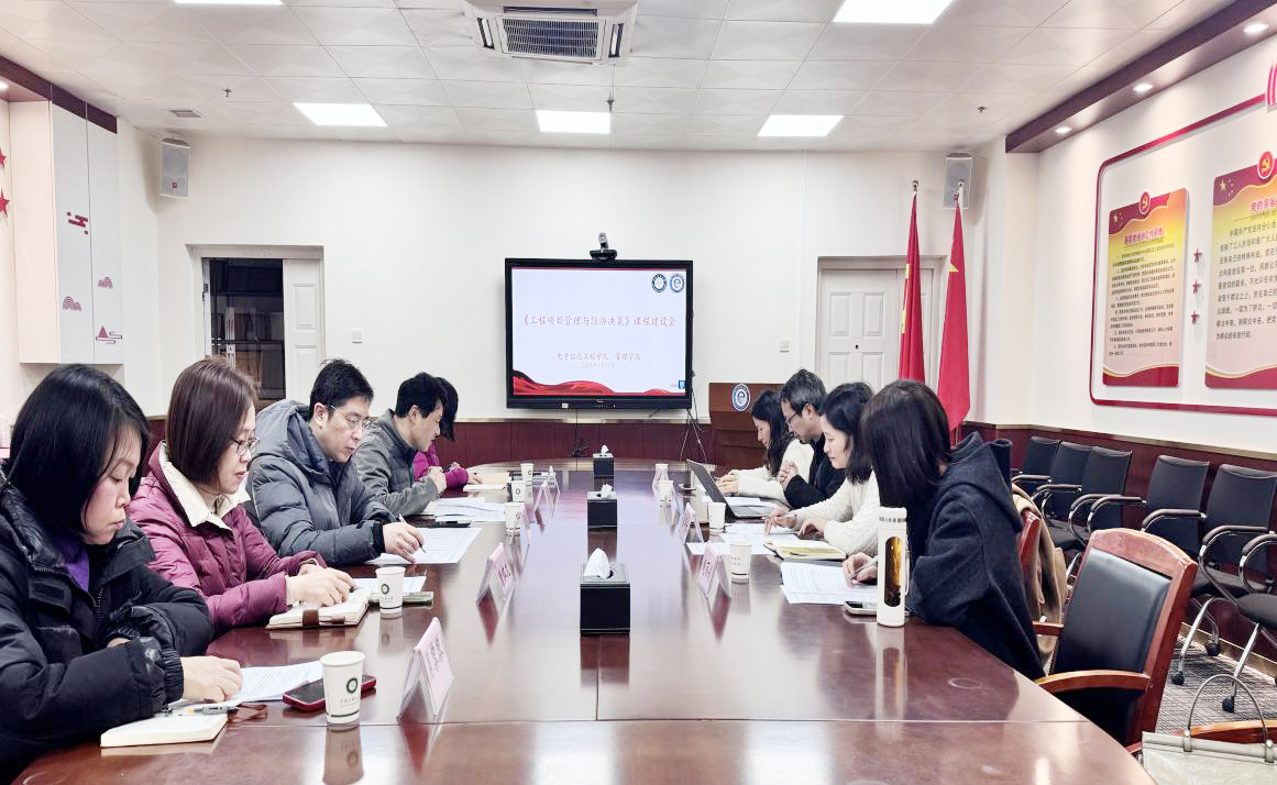 1月21日,為了加強電子信息類專業人才培養融入跨學科知識和能力的教育教學,電子信息工程學院與管理學院在16號教學樓共同舉辦《工程項目管理與經濟決策》跨學院跨學科課程建設研討會。管理學院院長翟華云、旅游管理教研室主任王劍,電子信息工程學院院長楊春勇、副院長侯金,以及兩院課程組的骨干教師們齊聚一堂,共同為新工科人才非技術能力培養的相關課程建設出謀劃策。研討會由楊春勇主持。