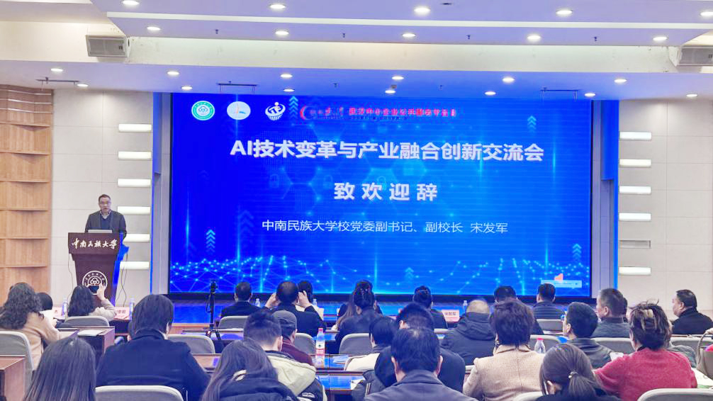 宋發軍致辭。他表示,以人工智能、量子計算為核心的第四次工業革命正以前所未有的速度重塑全球產業格局,AI作為這場變更的核心驅動,對于未來人類生活、經濟發展、社會運行將產生關鍵作用。站在時代的潮頭,中南民族大學始終秉持“服務國家戰略、扎根光谷發展”的使命,積極響應“數字中國”建設號召,在多個領域持續發力,與頭部企業攜手共建平臺,為教育強國建設不斷注入民大方案。他期待,與會專家學者和各界精英充分交流、分享經驗,助力校企數字化轉型與產學研合作,共同推動湖北數字強省與武漢AI產業的發展。