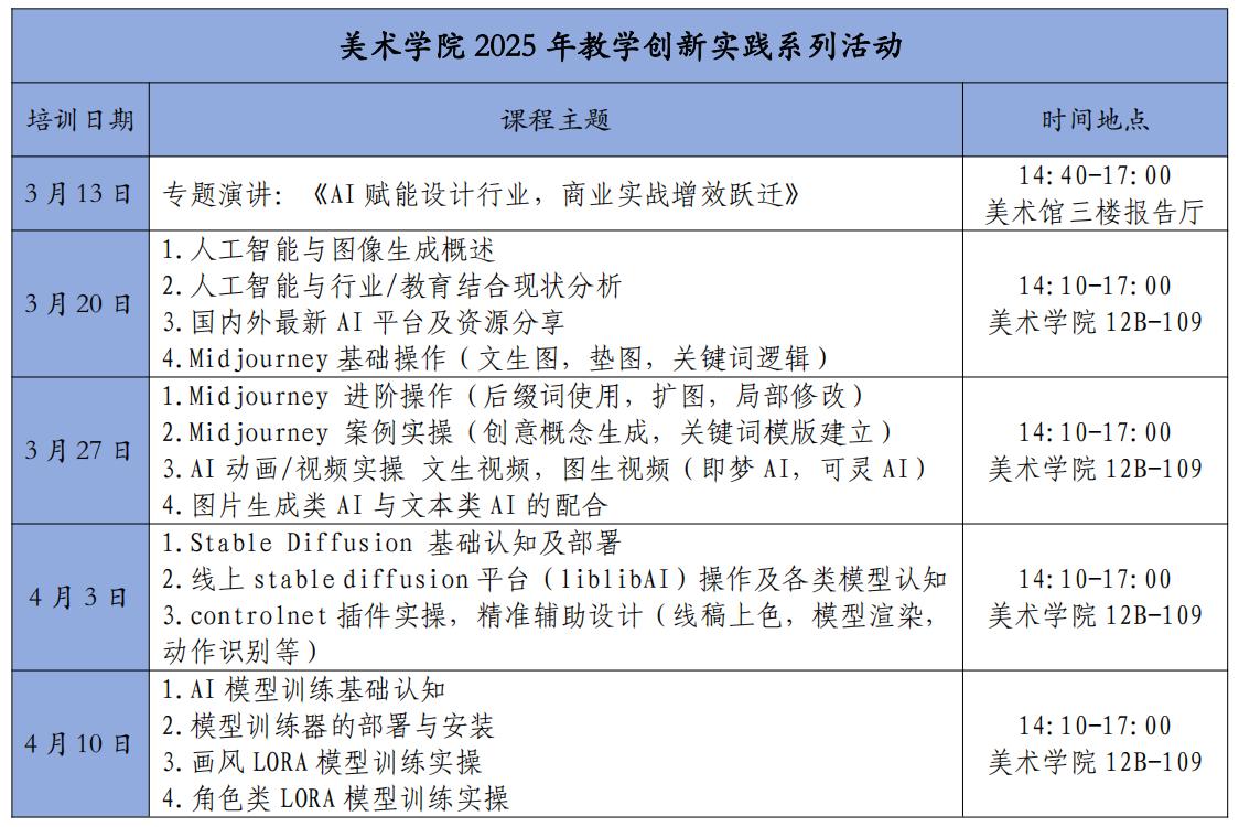 本次系列活動課程安排。 美術學院供圖