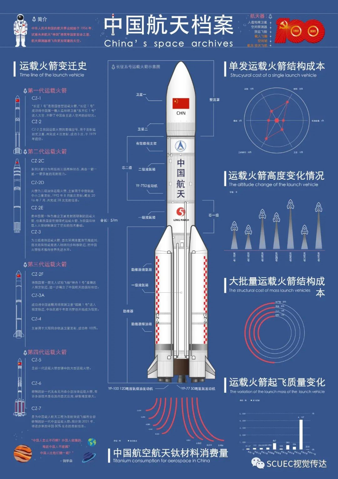 本次課程展示主要分動畫、海報主圖及文創(chuàng)產(chǎn)品設(shè)計3個部分。同學(xué)們對國家經(jīng)濟發(fā)展、科技變遷、人民生活條件改善等方面進行圖文收集與分析,以圖文圖形化、數(shù)據(jù)圖表化等靜態(tài)轉(zhuǎn)動態(tài)、抽象變具象的創(chuàng)新型視覺表現(xiàn)方式展現(xiàn)我國發(fā)展變化與發(fā)展成果,改變了以往單一的靜態(tài)平面展示,并將相關(guān)民族、文化、思政元素融入動態(tài)海報及文創(chuàng)產(chǎn)品當(dāng)中。例如《建黨100周年以來的媒體變遷》、《飛騰的中國外交》、《能源發(fā)展圖鑒》、《中國航天檔案》、《中國高鐵》和《建校70周年之絲巾地圖文創(chuàng)設(shè)計》等作品既有宏闊主題,也有實用設(shè)計,均精美生動,可圈可點。