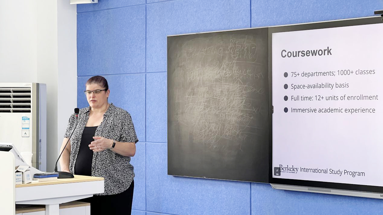 4月16日,加州大學(xué)伯克利分校國際交流項目部副主任Jenny Cornet-Carrillo、項目官員Shannon Buckley-Shaklee來校訪問,系統(tǒng)介紹了學(xué)校情況、校園特色以及海外學(xué)習(xí)項目(Berkeley International Study Program)的課程設(shè)置、項目費用、申請錄取流程等事項,與2025年秋季學(xué)期出國學(xué)習(xí)學(xué)生進行了一對一面試,并就申請流程、錄取標準等學(xué)生關(guān)切的問題進行了詳細解答與指導(dǎo)。加州大學(xué)伯克利分校以其頂尖的學(xué)術(shù)資源與靈活的課程設(shè)計,為我校學(xué)生提供了多元化海外交流學(xué)習(xí)平臺,助力學(xué)生積累國際經(jīng)驗。