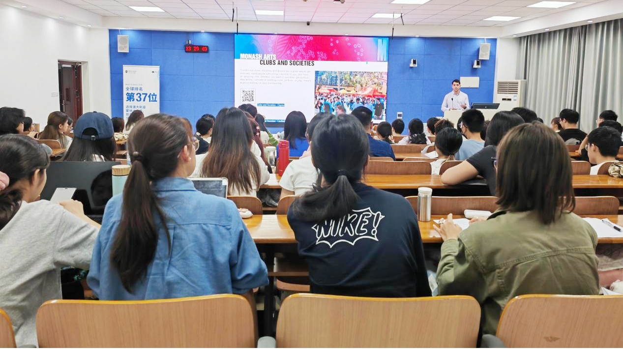 4月11日,蒙納士大學(xué)人文與社會科學(xué)學(xué)院招生官Joel Robinson、教育學(xué)院招生官Jennifer Li、理學(xué)院招生官Guillermo Leguizamon一行3人來校訪問,與國際合作與交流處負責(zé)人具體探討了師生交流、聯(lián)合培養(yǎng)等合作事項,并舉行了升學(xué)項目專場宣講會。蒙納士大學(xué)代表向?qū)W生系統(tǒng)介紹了該校特色、辦學(xué)優(yōu)勢、碩士項目相關(guān)專業(yè)課程體系、申請流程等,隨后對我校文學(xué)與新聞傳播學(xué)院、計算機科學(xué)學(xué)院、生命科學(xué)學(xué)院、經(jīng)濟學(xué)院等10個學(xué)院的學(xué)生進行了一對一招生面試,部分學(xué)生現(xiàn)場獲得優(yōu)先錄取資格。