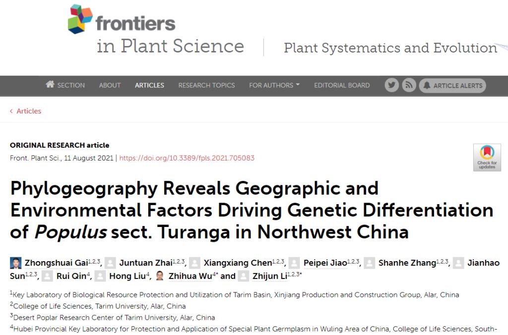 近日,我校生科學院生物資源保護與利用工程中心團隊與塔里木大學李志軍教授團隊聯合在植物學國際期刊Frontiers in Plant Science發表題為Phylogeography Reveals Geographic and Environmental Factors Driving Genetic Differentiation of Populus sect. Turanga in Northwest China的研究論文。該研究首次闡明了地理隔離和環境異質性決定了胡楊組現存的遺傳格局,發現南疆胡楊組居群遺傳多樣性高與地理結構和較強的基因流有關,為胡楊組遺傳分化受地理和環境因素的驅動機制提供了新的理論依據,也為深入開展胡楊組多樣性的保護提供重要的遺傳學基礎。該論文由中南民族大學與塔里木大學聯合指導的博士研究生蓋中帥為第一作者,塔里木大學李志軍教授和中南民族大學生物資源保護與利用工程中心吳智華博士為論文的共同通訊作者。這也是我校生科學院與塔里木大學圍繞胡楊等邊疆植物的多樣性開展系列深入合作以來,繼合作出版學術專著《胡楊和灰楊抗旱的生理及分子機制研究》之后的又一合作成果。2021年我校生科學院還聯合塔里木大學、西南民族大學開展了對包括胡楊木資源在內的邊疆科考活動;行程遍及胡楊木在我國的棲息地;正是前期的工作基礎,由中南民族大學吳智華博士與塔里木大學李志軍教授聯合申報的2021年國家自科基金地區基金獲得立項,成為進一步研究胡楊木在荒漠等極干旱地生態系統中的作用標志性進展。